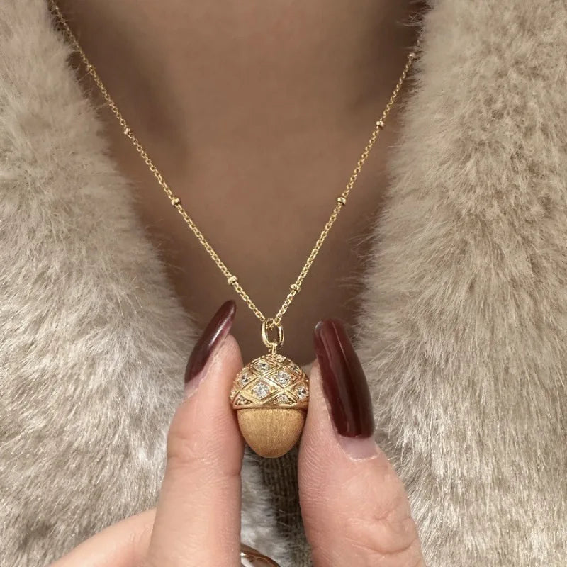 Crystal Acorn Pendant Necklace | Vintage Gold Charm Jewelry