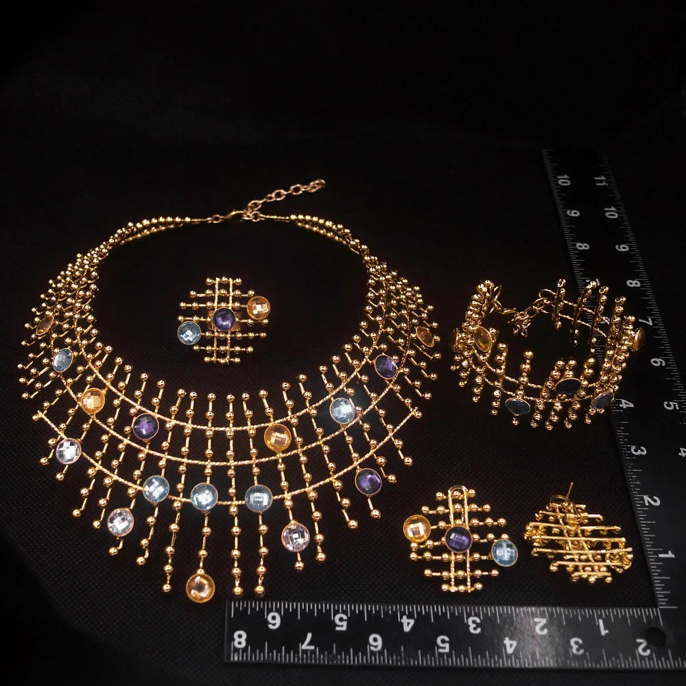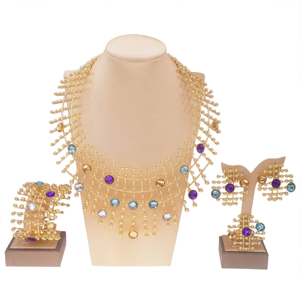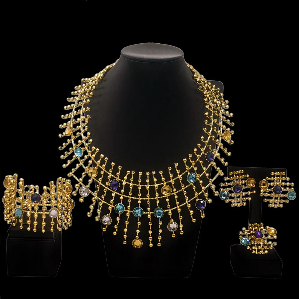 24k Gold Plated Jewelry Set with Multicolor Stones