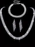 Radiate elegance on your special day with the 4-Piece Rhinestone Bridal Jewelry Set — a dazzling collection designed to capture light and attention from every angle. With a brilliant array of clear rhinestones set in lustrous silver, this timeless ensemble adds sophistication and sparkle to any bridal or formal look.