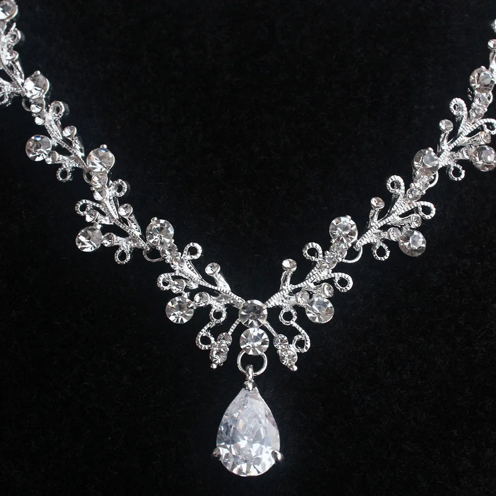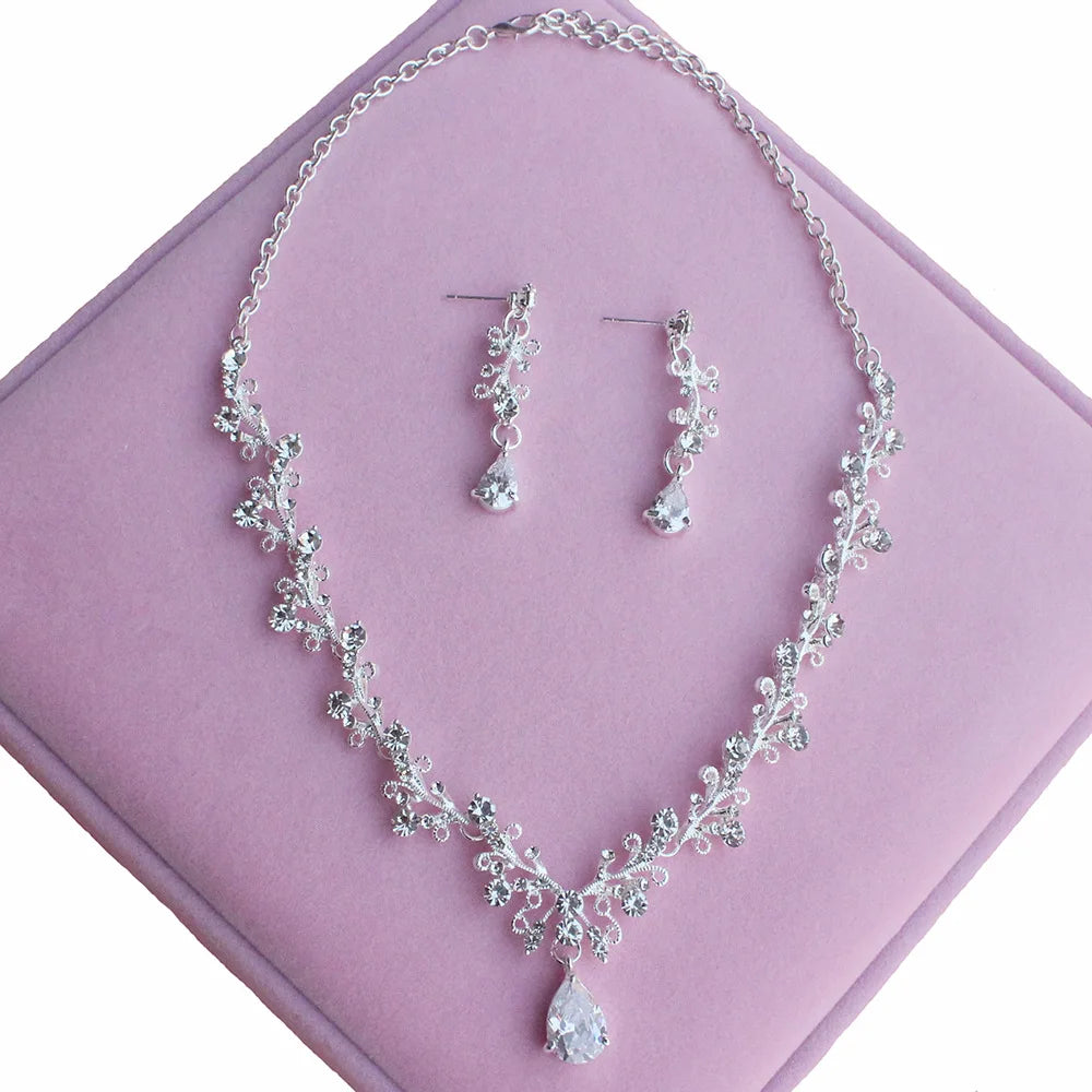 Step into your fairytale moment with the Crystal Bridal Tiara & Necklace Set — a dazzling ensemble crafted for timeless elegance. Adorned with luminous crystals in a floral motif, this set captures the light from every angle to make your bridal look truly unforgettable.