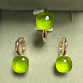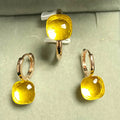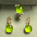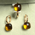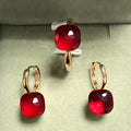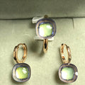 Rose Gold Plated Colorful Square Crystal Ring & Earrings Set