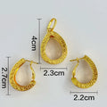 Command attention with the Gold Teardrop Pendant & Earrings Set — a radiant symbol of bold sophistication. Designed in a teardrop silhouette and finished in 18K gold plating, this timeless set brings a refined touch of Dubai-inspired luxury to every look.
