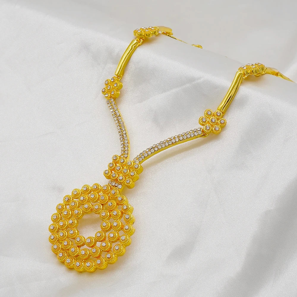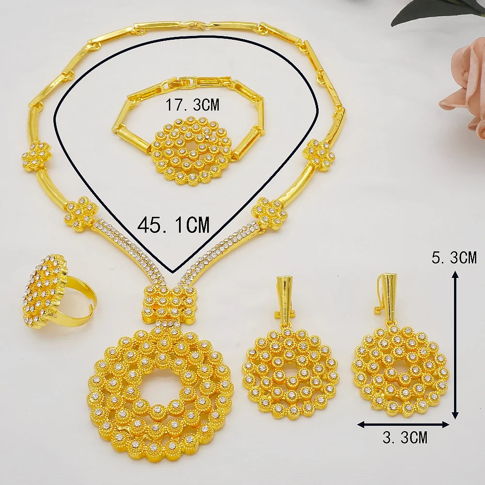 Dubai Jewelry Set Gold Color Round Necklace Bracelet Ring