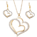 Crystal Double Heart Necklace and Earring Jewelry Set