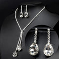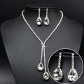 Dazzle with every movement in the Crystal Water Drop Bridal Jewelry Set — a stunning pairing of a teardrop necklace and matching earrings designed to shimmer like liquid light. Its timeless silhouette and clear faceted crystals make it a perfect finishing touch for brides, bridesmaids, and elegant evening wear.