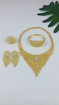 Necklace + bracelet + earrings + ring • 18K gold-plated copper alloy with crystal rhinestones • Perfect for weddings, galas, parties & special celebrations