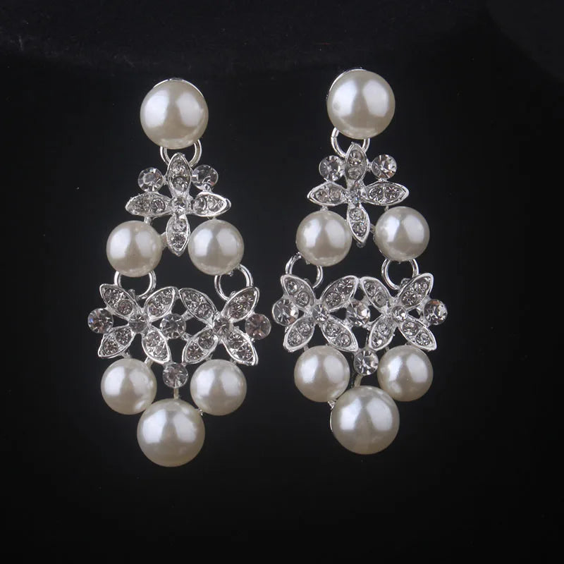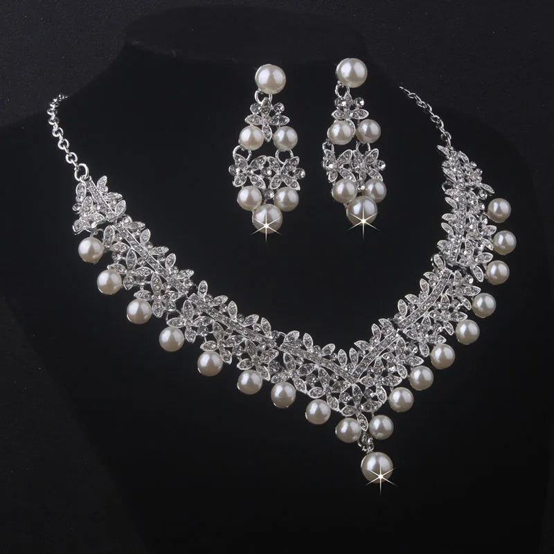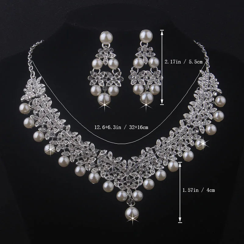 Sparkling Crystal & Pearl Bridal Jewelry Set | Wedding Necklace & Earrings