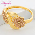 Jewelry Set for Women Dubai Zircon Pendant Clip Earrings Bangle Ring Set Italy Gold Color Bride Jewellery Wedding Party Gift