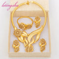 Features: African Dubai Gold Plated Necklace Earrings Ring Sets