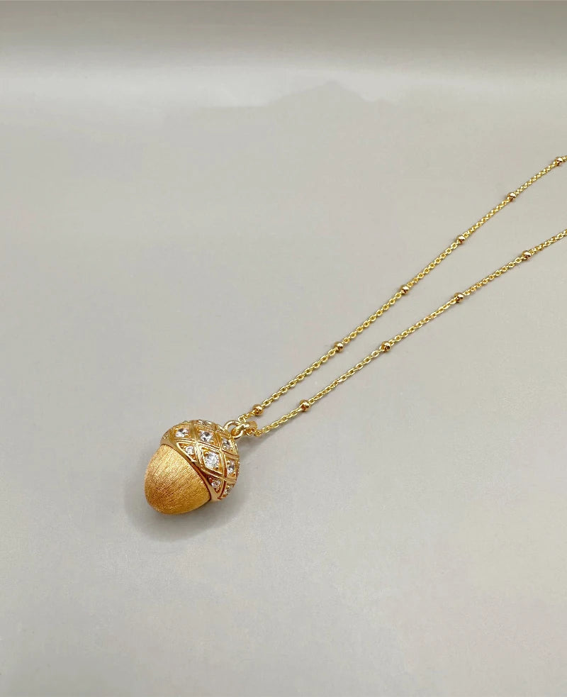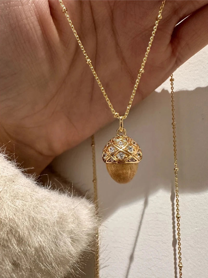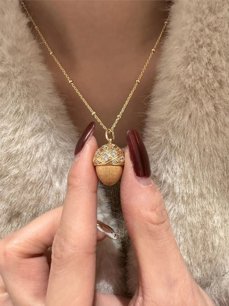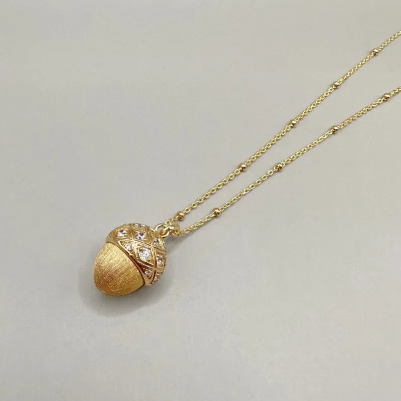 Crystal Acorn Pendant Necklace | Vintage Gold Charm Jewelry