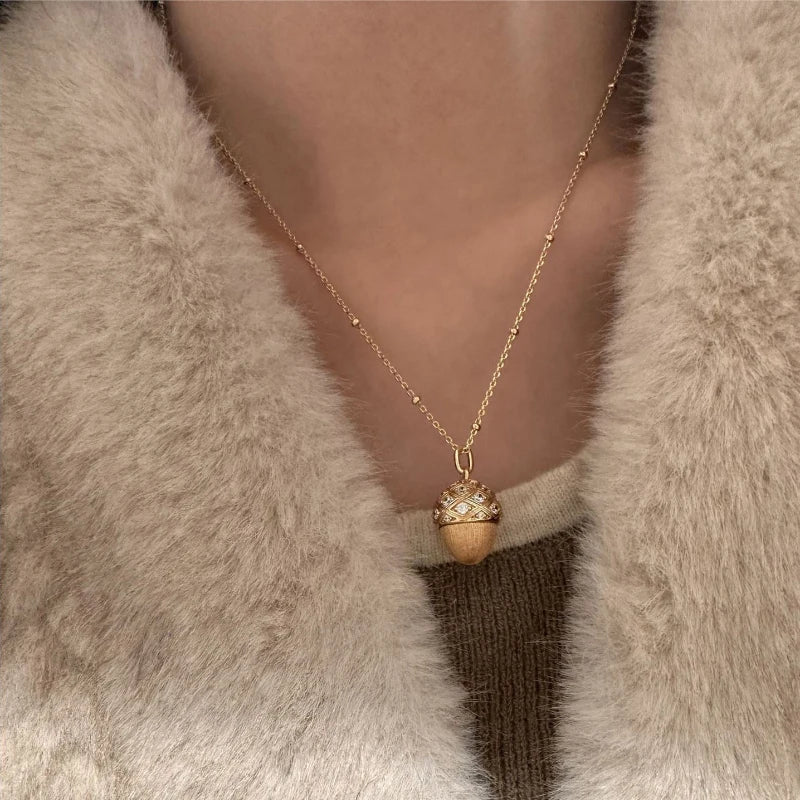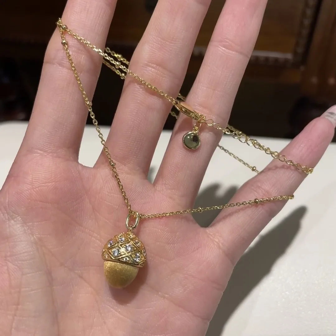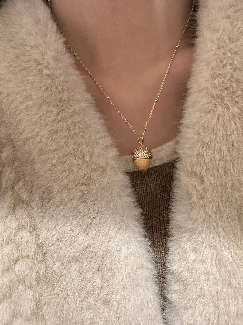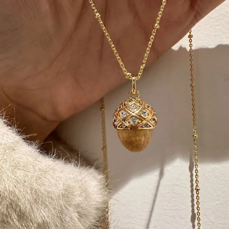 Crystal Acorn Pendant Necklace | Vintage Gold Charm Jewelry