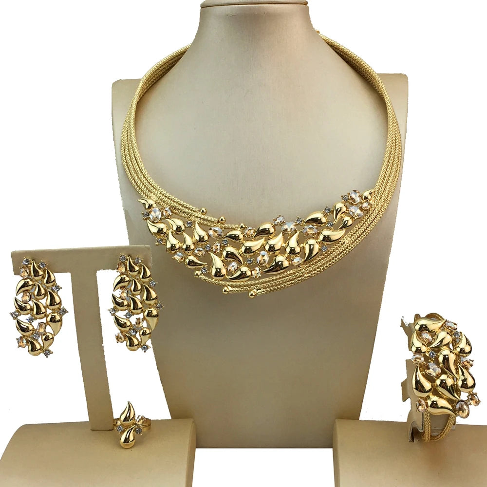 Gold Plated Jewelry Set with Necklace Earrings Bracelet Ring