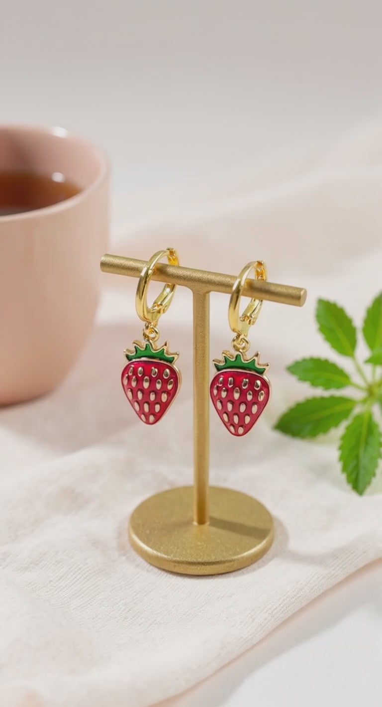 - Vibrant red enamel strawberry charms for a fresh, whimsical accent