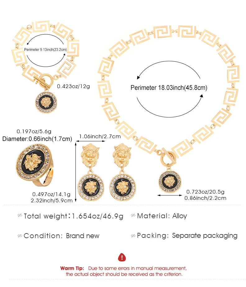 Baroque Lion Head Jewelry Set with Necklace Bracelet Earrings Ring