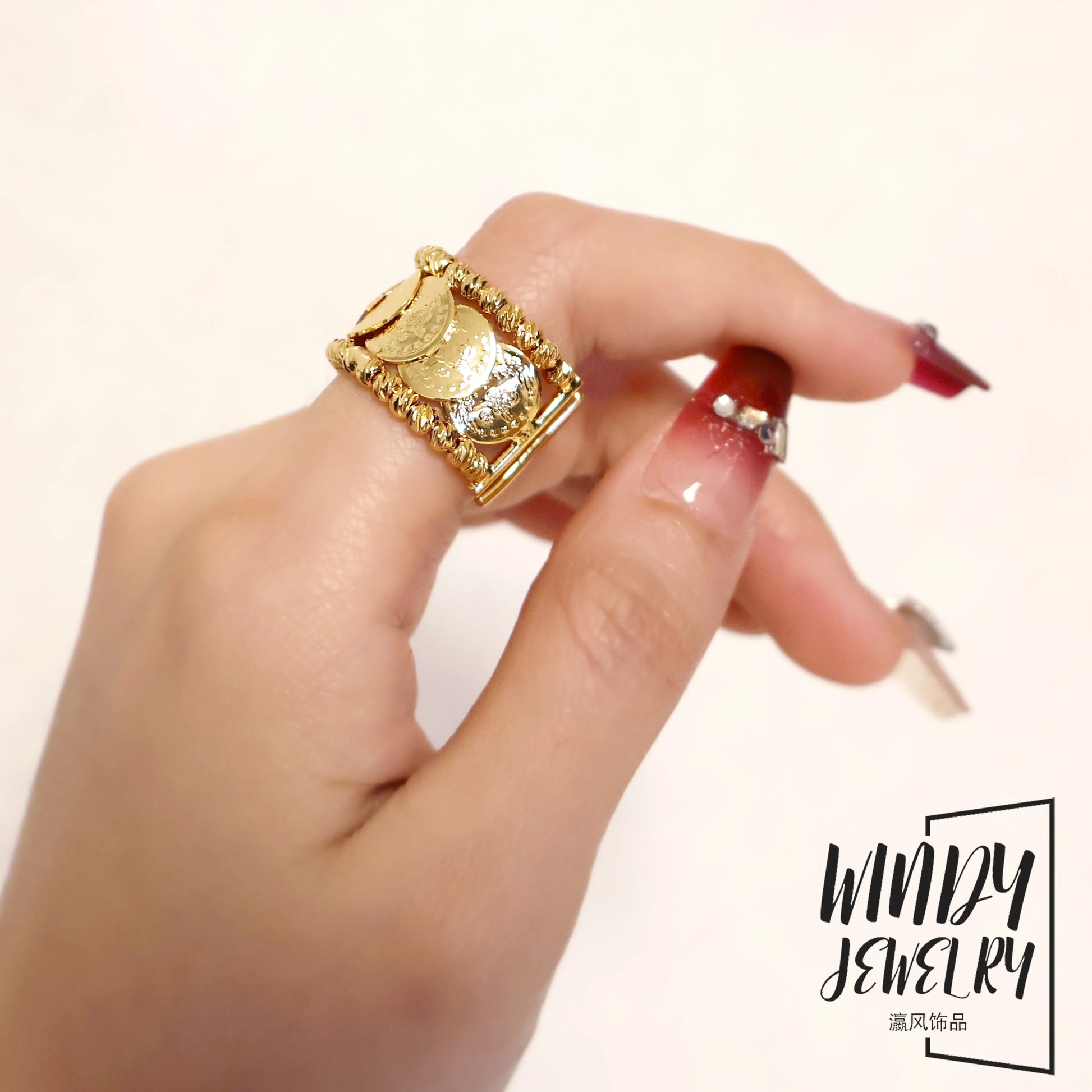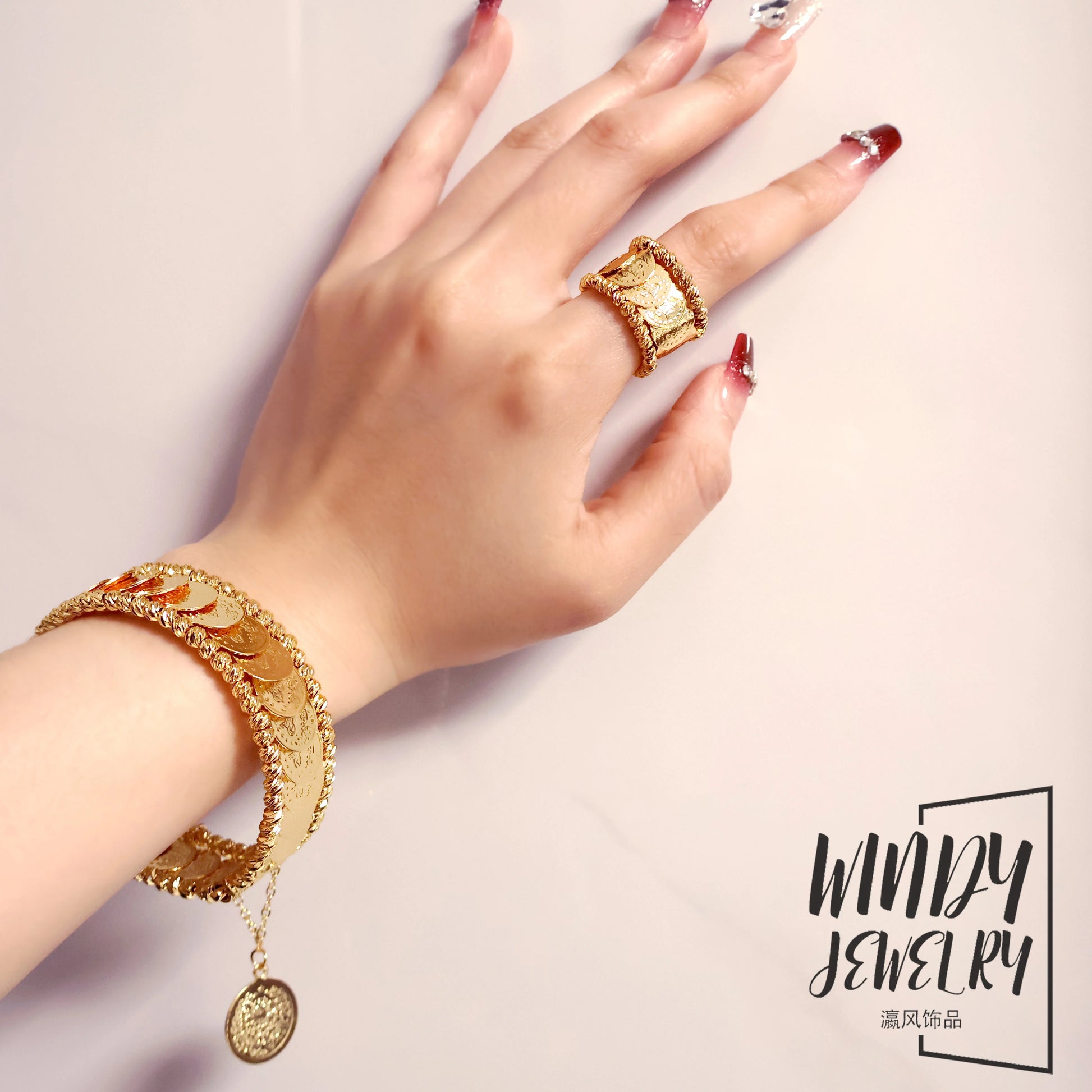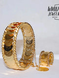 Elegant Dubai Coin Jewelry Set Gold Plated Bracelet and Ring