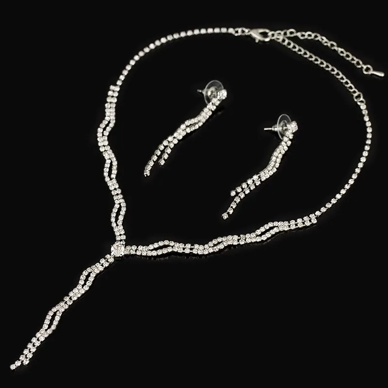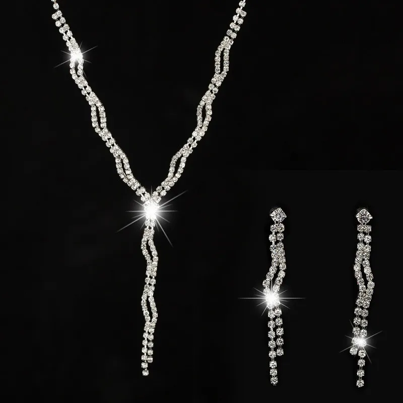 Sparkling Rhinestone Jewelry Set | Necklace & Earrings for Brides